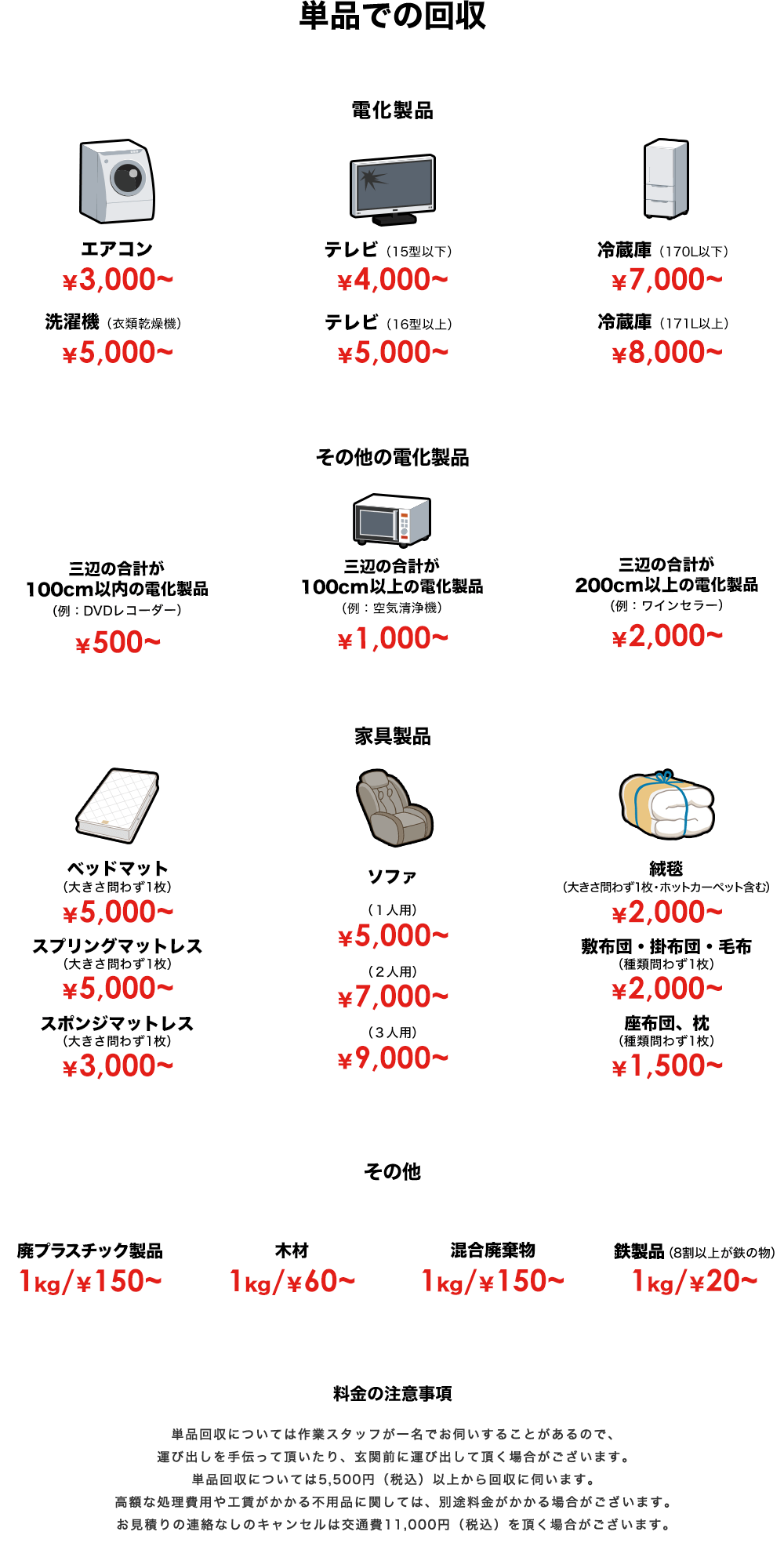 スタッフ追加料金・車両費・出張費・エアコン取り外し費用が全て込みの料金となっております。